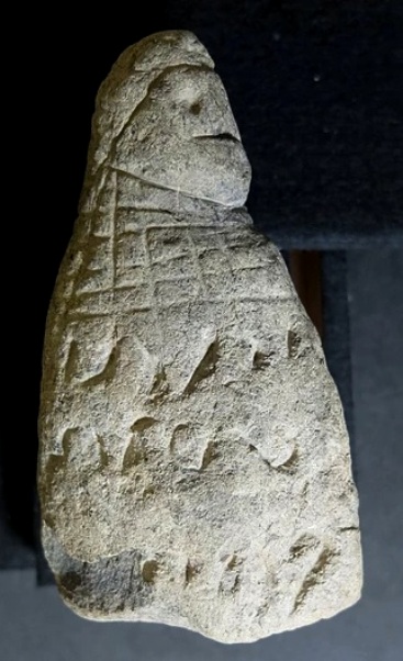 Piedra de Llywel por la cara que han destruído intencionadamente los lacayos de la élite para que no podamos descubrir a un ser con vestimenta egipcia alejándose de las pirámides de Egipto en dirección a occidente; esta cara la tienen oculta en el museo para que no se pueda ni tan siquiera entrever lo que destruyeron