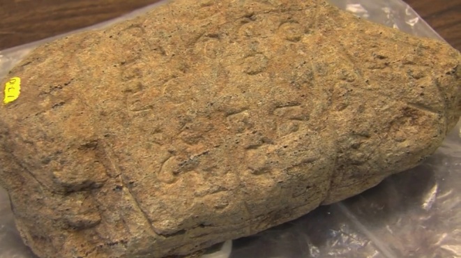 esta es la Piedra Bourne, hallada en Massachutsetts, en Norte América; tiene inscripciones con caractéres fenicios