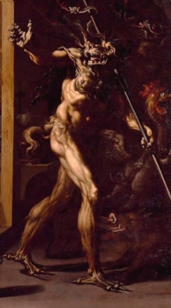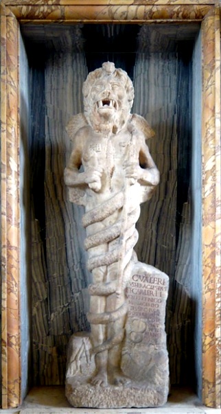 En esta escultura, el Papa Gregorio XIII se sienta en su trono, mientras que la persona a su izquierda levanta el velo bajo el trono de Gregorio y descubre un reptil. Esta entidad de reptil es el poder oscuro detrás de todos los líderes del mundo y la fuente de su sangre “real”.