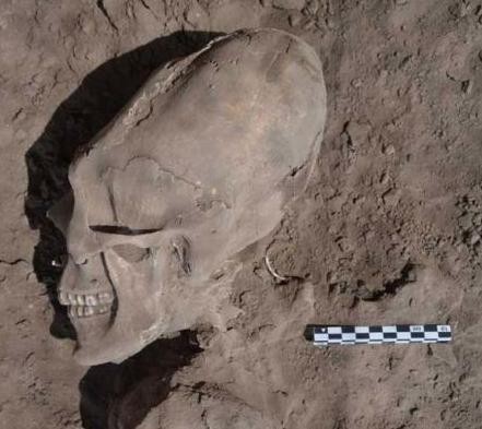 the "scientists" use to lie every time which they have interest and therefore they say that this is a normal human skull with large cranial deformation; it was found in Sonora, Mexico. What they do not say is that were many the similar individuals found in the same area of burials