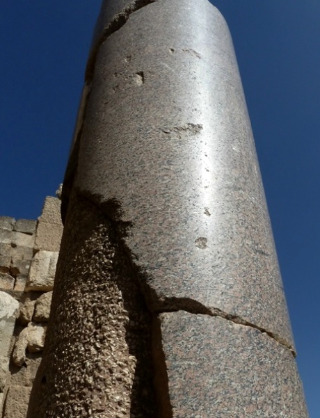 Columna de Baalbek en granito rosa de Asuán; alguien transportó aquí el material desde el sur de Egipto